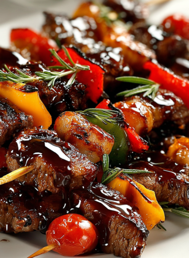 Succulent Balsamic Glazed Beef and Chicken Skewers offer a tantalizing blend of sweet and savory flavors, making them an ideal addition to any gathering or BBQ.